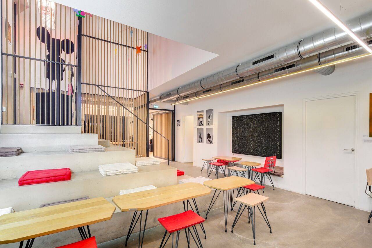Quatre studios de répétition de musique, de grands et beaux espaces galeries à la déco boisée, une salle de danse pour les cours de yoga, hip-hop etc., un bar central, le tout réuni au même endroit. Pratique pour les danseurs, musiciens et autres amoureux de vins naturels et tapas gourmandes. Bref, un endroit pour tout épicurien qui se respecte.